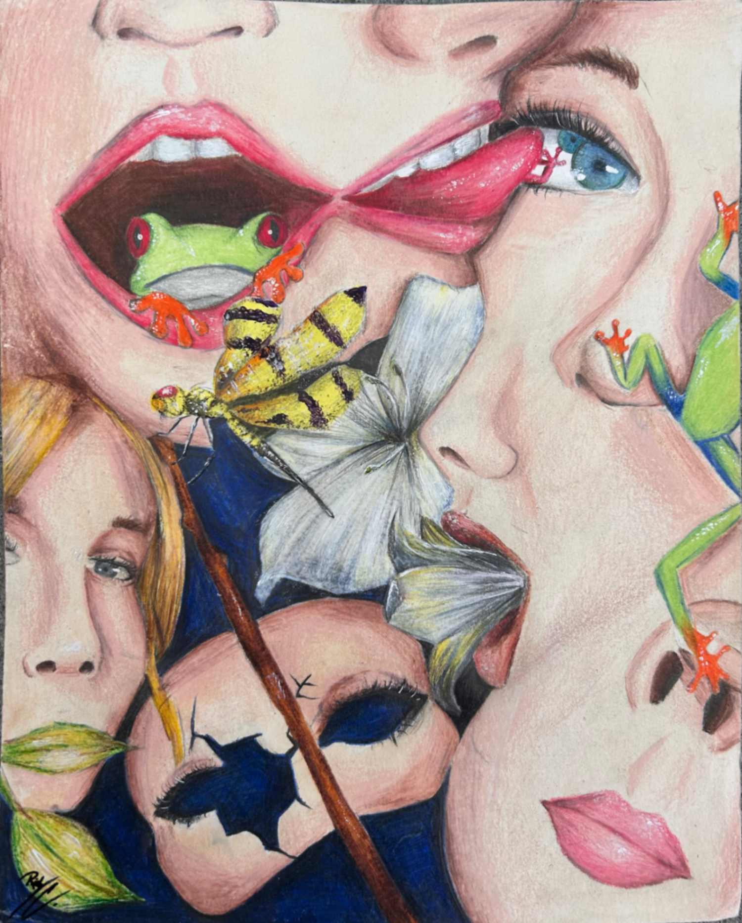 To be a person is difficult. Like a frog, I jumped between interests and people, trying to find myself. I see how happy I am with those I have today. I am free like a dragonfly, breaking away from the mask I hid behind. I’m happy being myself and vulnerable with the ones I love. I won’t be this me forever, but I love who I am.