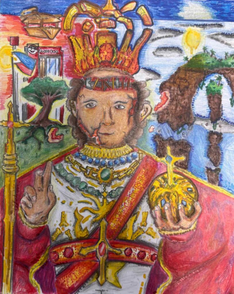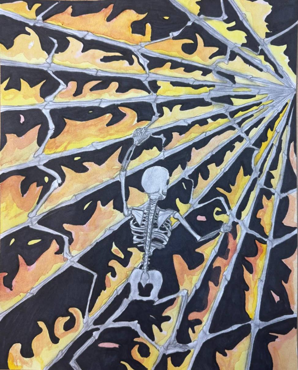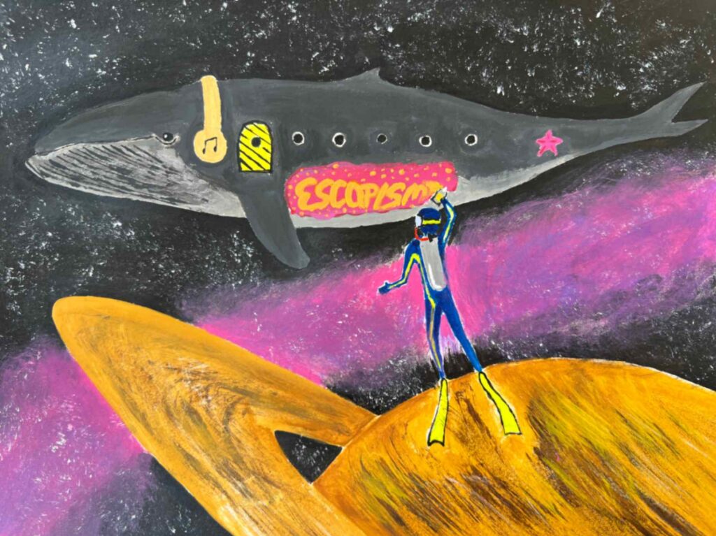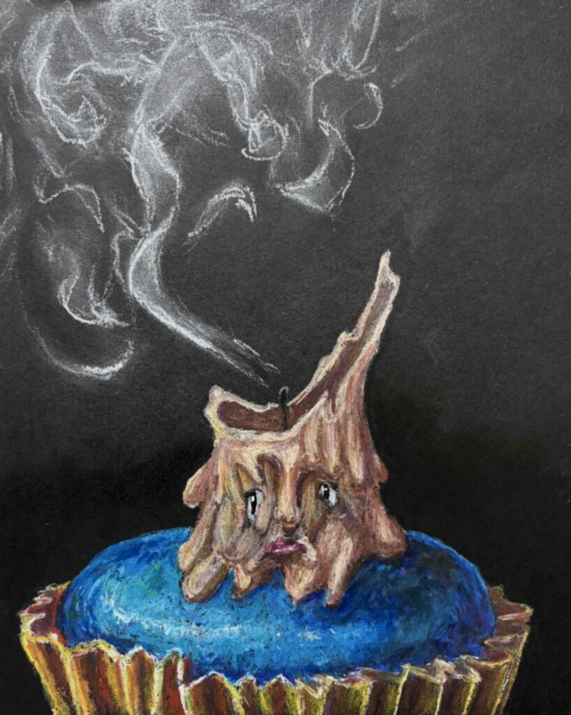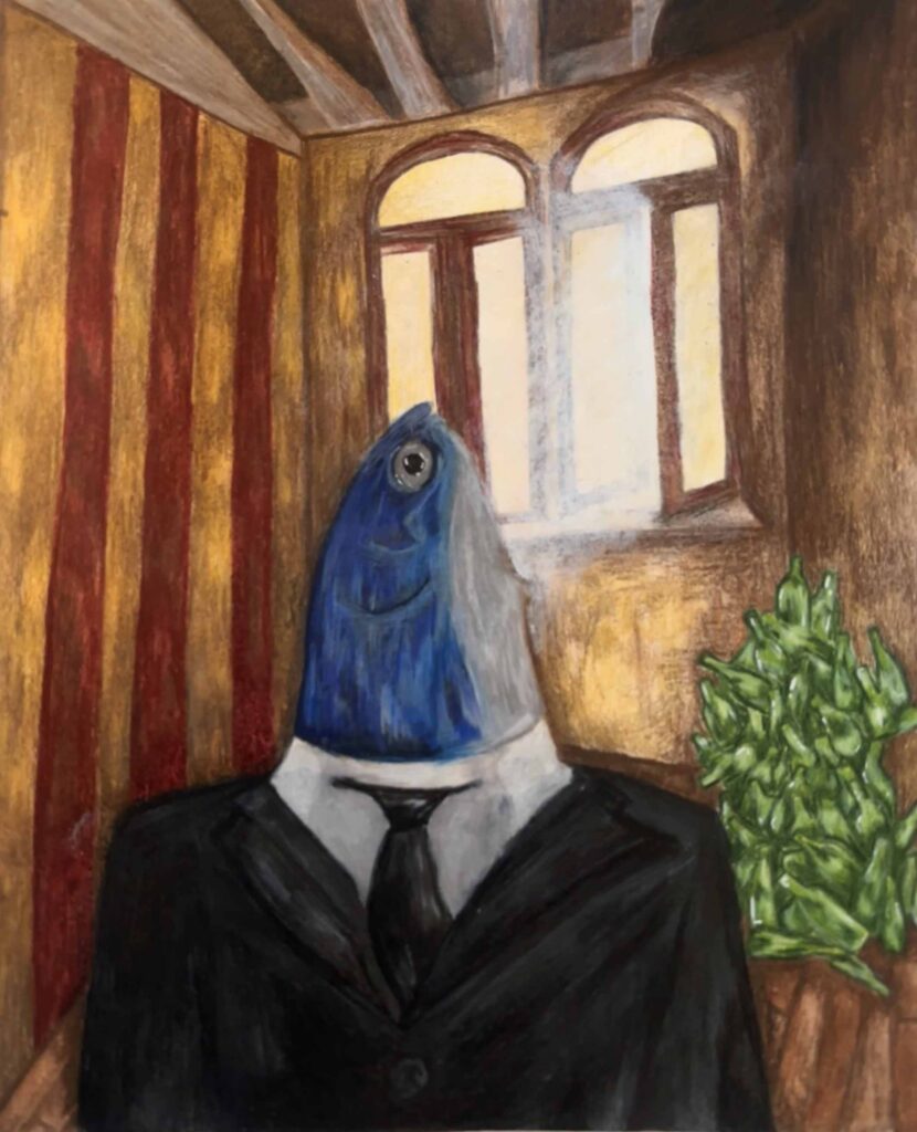 My piece Dalí and Me was inspired by how artists from the past, especially Salvador Dalí, shape the imagination of young artists today. I responded to the theme of the surreal self by blending portraiture with dreamlike symbolism. Using distortion and unexpected scale, I explored identity as fluid and strange, honoring Dalí’s ability to turn the familiar into something unforgettable.