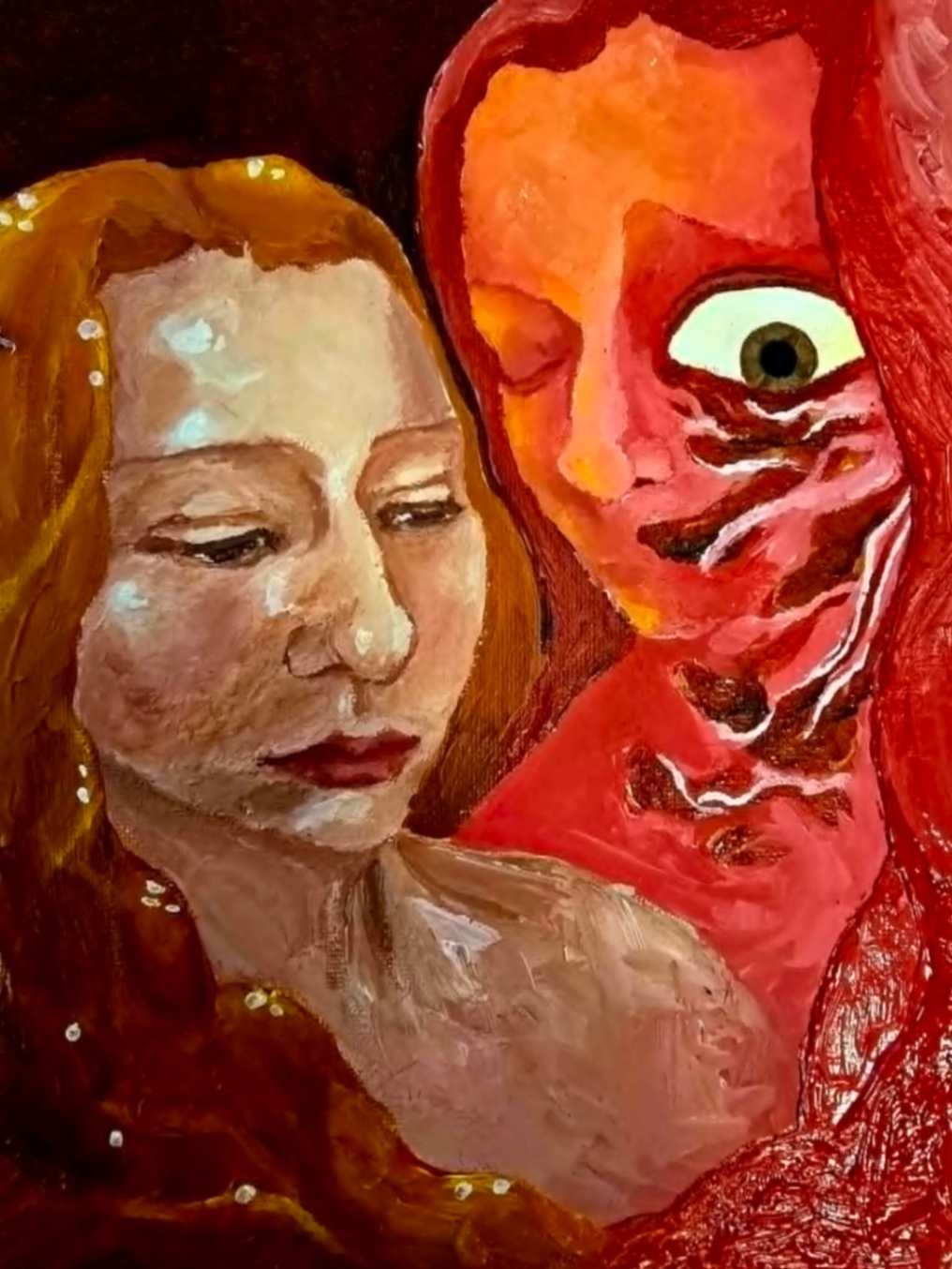 Tainted is an art-piece I had a dream about when thinking about this topic. The person at the center is noticeably different than the others.