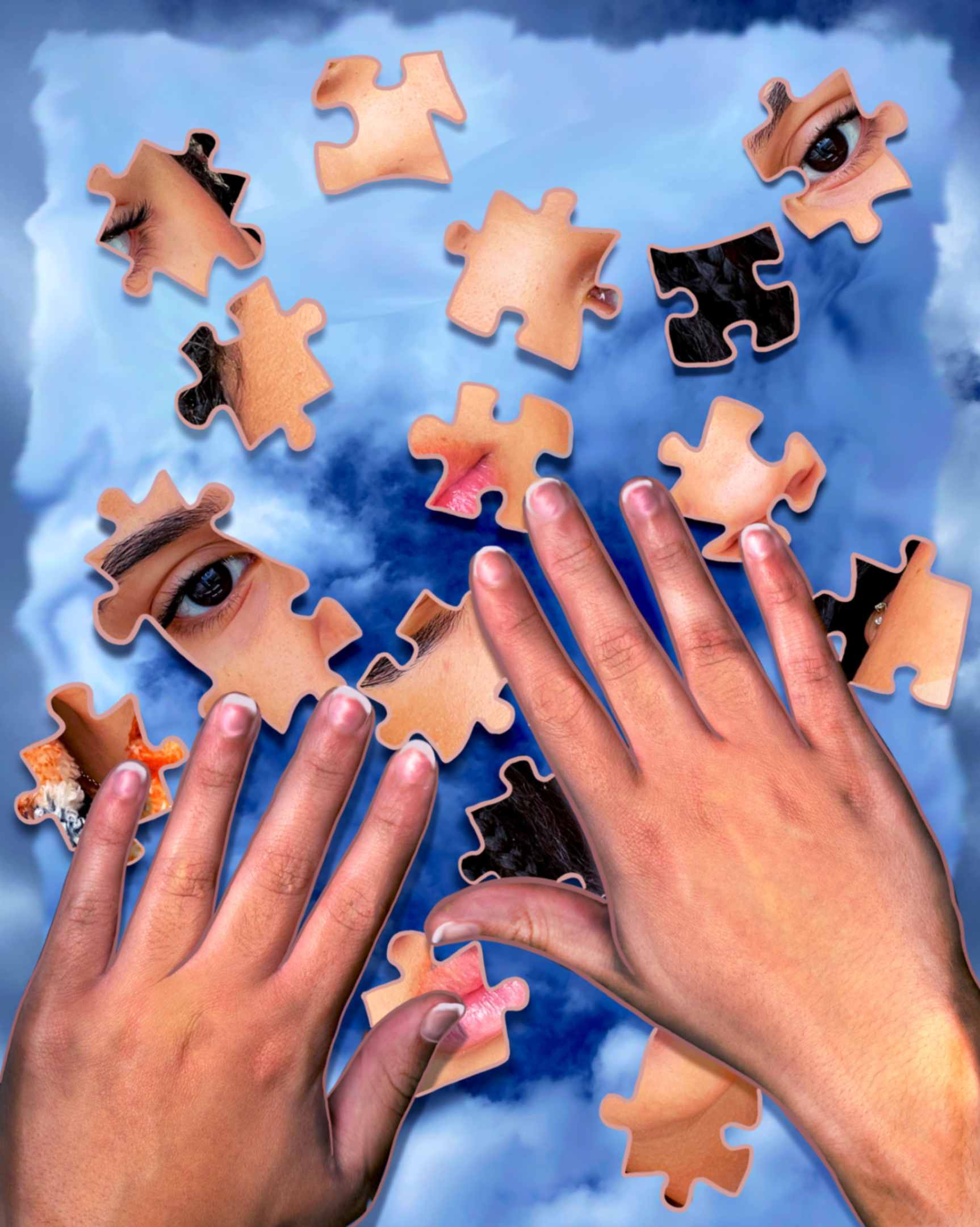 I was inspired by the memories that make up who I am today. This piece is based on my family, myself, and my feelings. I used juxtaposition and symbolism that represent different aspects of my memories and how I am connected to those moments.This piece is about growth and personal feelings, and it’s easy to feel like you have no control. My siblings, father, mother, and myself are in the piece.