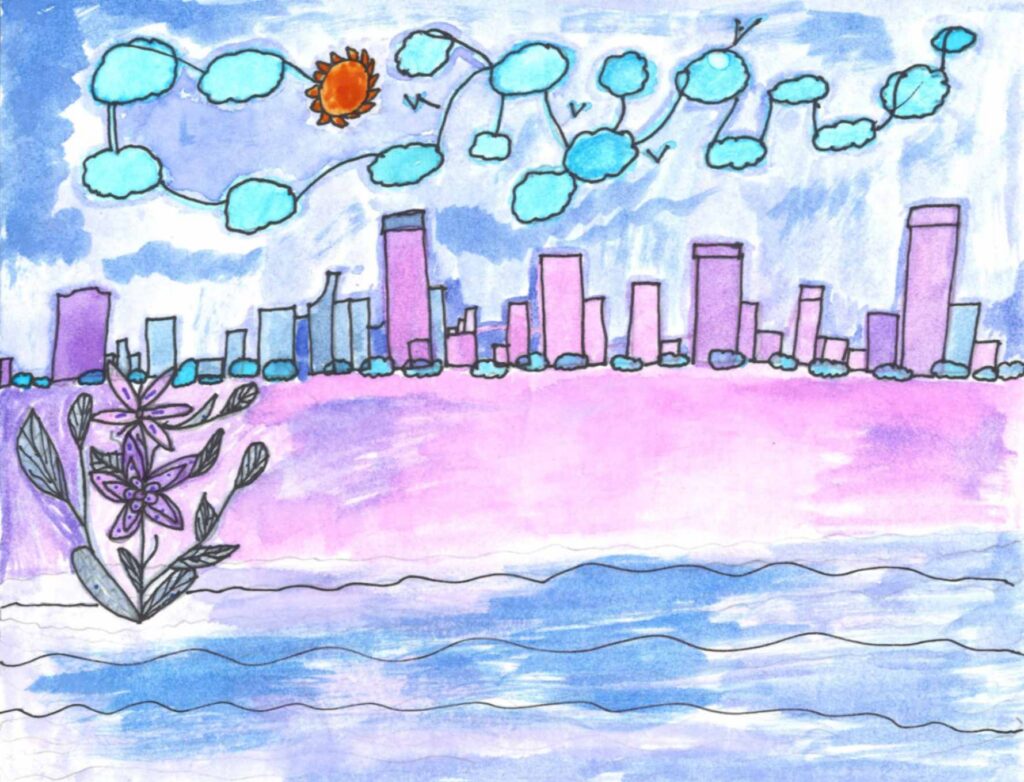 This composition is the view T’ieramaree has in her mind of what the beautiful city looks like from across the water.