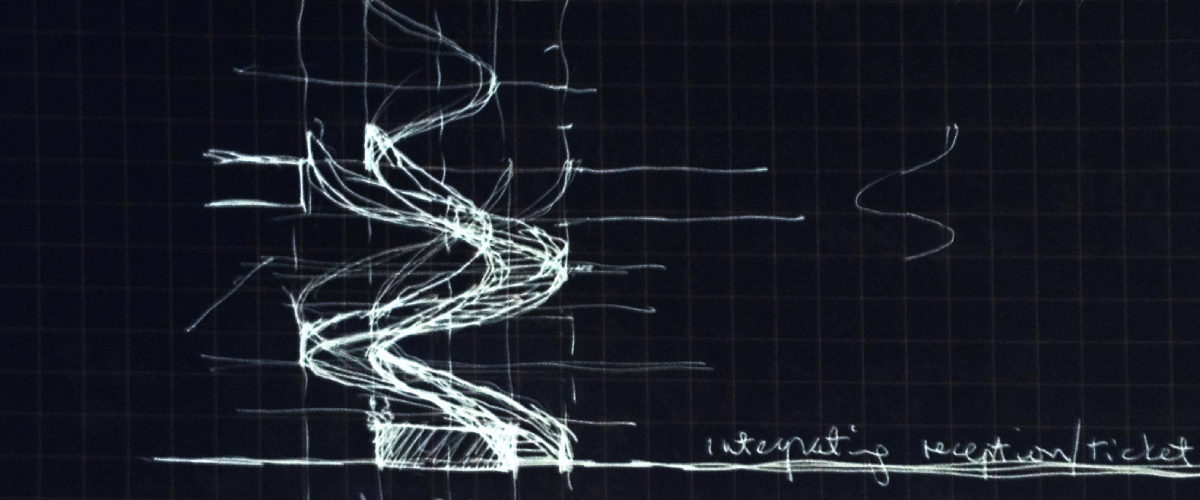 Image credit: Yann Weymouth, DALI, Stair Study, c. 2008, White ink on black paper, Beck Archives