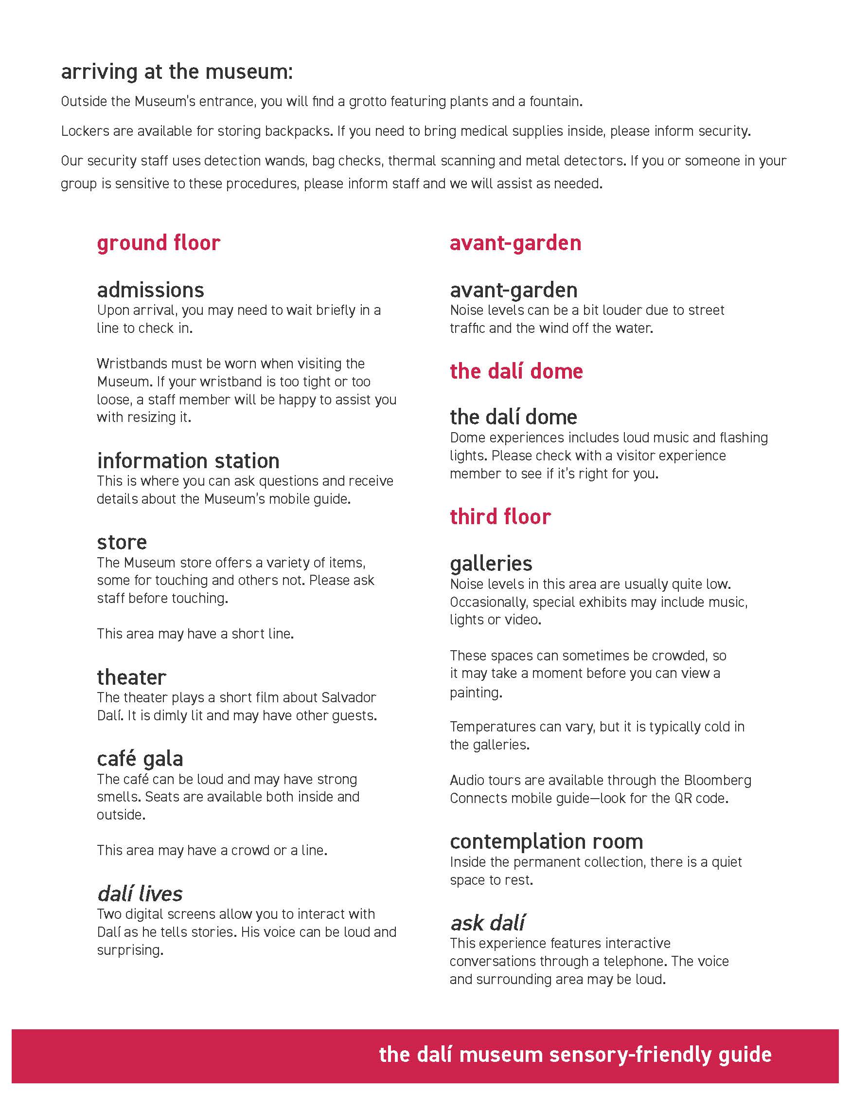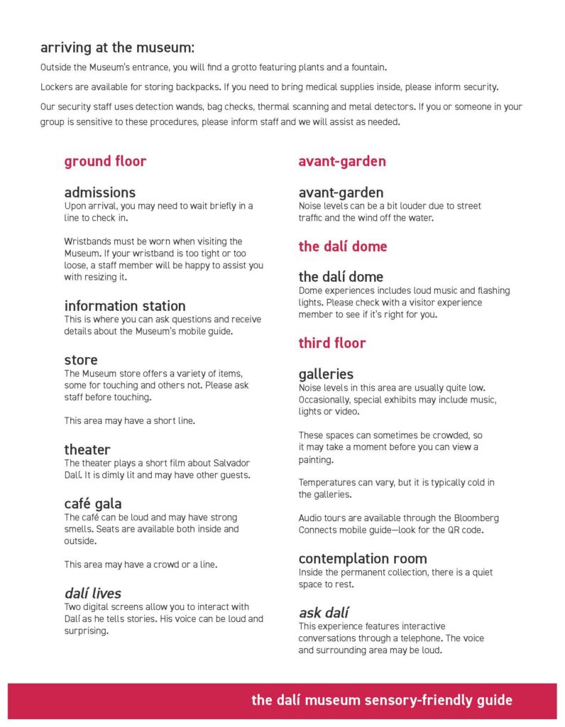 We want everyone to enjoy their visit to The Dalí Museum. The Dalí welcomes all as unique individuals and is committed to making its collection, exhibitions, building and programs accessible.